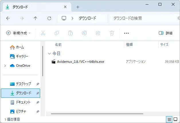 「ダウンロード」フォルダー内にAvidemux_x.x.xVC++64bits.exe(x.x.xはバージョン番号です)がダウンロードされたことを確認します。