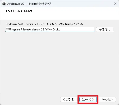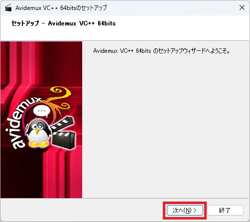 Avidemux_x.x.xVC++64bits.exeをダブルクリックします。
