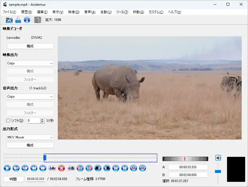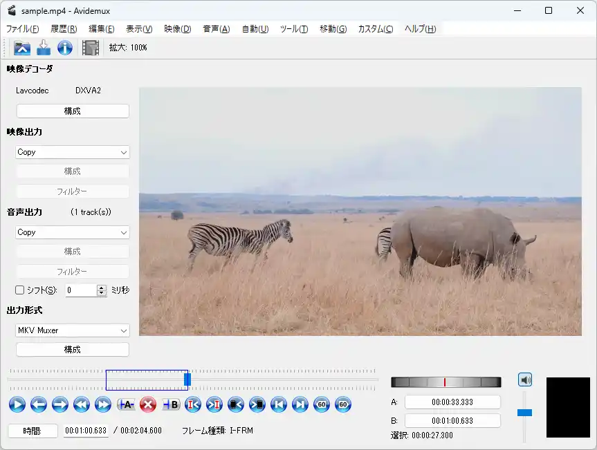 動画ファイルを無劣化でカット編集する・静止画を抜き出す-Avidemux
