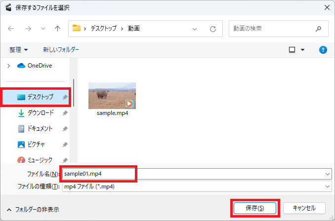 ※今回はデスクトップに「sample01.mp4」で保存しました。