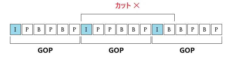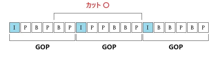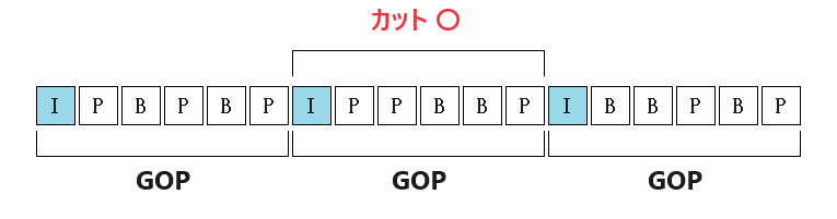 「GOP」の先頭フレームは必ず「I-FRM」ですが2番目フレーム以降の「P-FRM」や「B-FRM」の数や並びはファイルによって様々です。