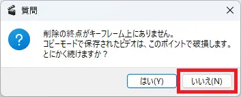 間違って「終了マーカをセット」ボタンを「Iフレーム」以外でセットしても「質問」ダイアログが出ますので「いいえ」ボタンをクリックしてやり直せます。