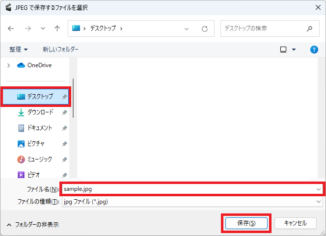 ※今回はデスクトップに「sample.jpg」で保存しました。