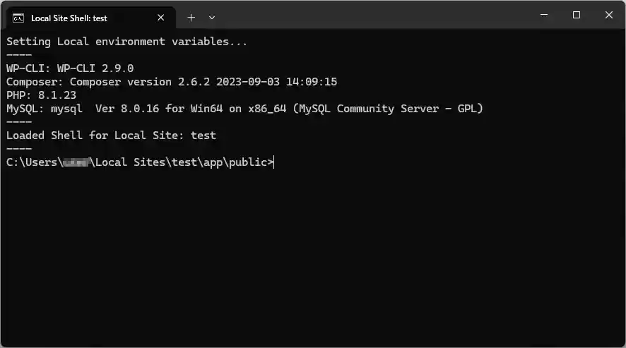 「Local Site Shell」画面が現れます。