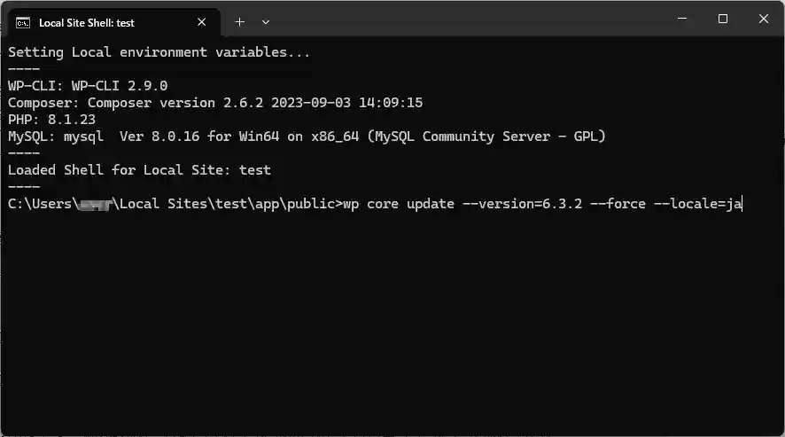 wp core update –version=6.3.2 –force –locale=ja