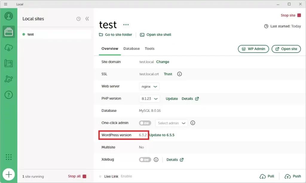 Local(Local by Flywheel)上のWordPressのバージョンを簡単変更